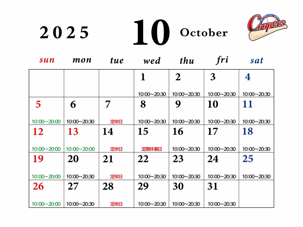 About Coopers Sports Coopers(クーパーズ)は、三重県下唯一の「野球専門店」としてオープンしました。野球に関する用品からメンテナンスまで、野球人の頼れる場所で有り続けるをコンセプトに営業しています。豊富な品揃えで、皆様のご来店をスタッフ一同、心よりお待ちしております。 グローブご購入の皆様 もっと見る 当店でグラブを購入すればお得なグラブ購入特典ついてきます! 詳しくはこちら Order Glove 当店では、高校生もお洒落でかっこいいグラブを利用していただけるように、高校生向けのオーダーグラブを日本でも最も多く取り揃えております。大手グラブメーカー様とコラボしたグラブをはじめ、当店オリジナルの「High Claw」のグラブなど、圧巻の品揃えはぜひ店頭にてお確かめください。 取扱メーカー High Claw Glove Order クーパーズスポーツだけのオリジナルブランド「High Claw」。どんな獲物(ボール)でも狙いとらえる鉤爪のようなグラブです。豊富なデザイン・グラブにマッチする機能性を考慮したデザイン・お客様のお好み・様々な要素を兼ね備えたグラブをオーダーしていただけます。 オーダーはこちら n's Glove Order 元ソフトボール日本代表長﨑望未プロデュースオリジナルグローブ 詳細はこちら WEB SHOP 店頭までお越しいただけない方はこちらでもお買い物いただけます。 Maintenance メンテナンス・修理は「DSリペアーマン認定」のスタッフが行います。当店はスピード第一!をモットーに、即日修理対応させて頂きます。(※要相談)ズボンやユニフォーム修繕にも対応いたします。お気軽にご連絡・ご来店ください. 各種料金 刺繍 三重県で唯一店舗内に刺繍機を導入しています。チーム名や名前、自分の好きな言葉などお気軽にご相談ください。 詳しくはこちら SNS ACCESS 電車の場合(徒歩約5分/400m) 近鉄「川原町駅」下車改札を出て左側へ(南東に進む)直進一つ目の信号(国道1号:滝川町交差点)を渡った先の教会の裏手 駐車場完備 店舗前に駐車場有(5〜6台) 営業カレンダー ●お支払いには、各種クレジットカードや電子決済がご利用いただけます